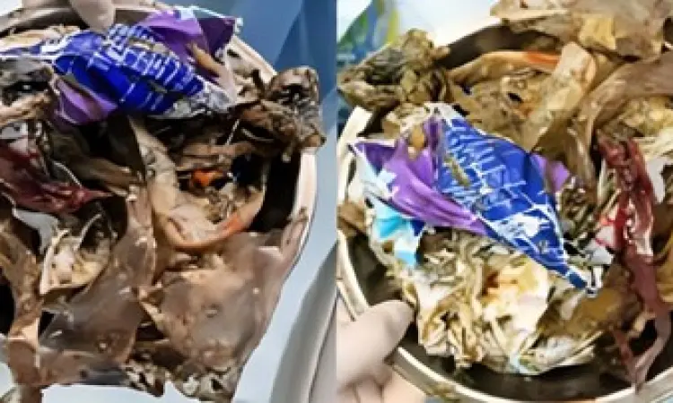 Dokter melakukan endoskopi dan menemukan sejumlah besar benda asing berupa kemasan sisa makanan plastik yang memenuhi perut pasien. Tim medis kemudian memutuskan untuk melakukan operasi.